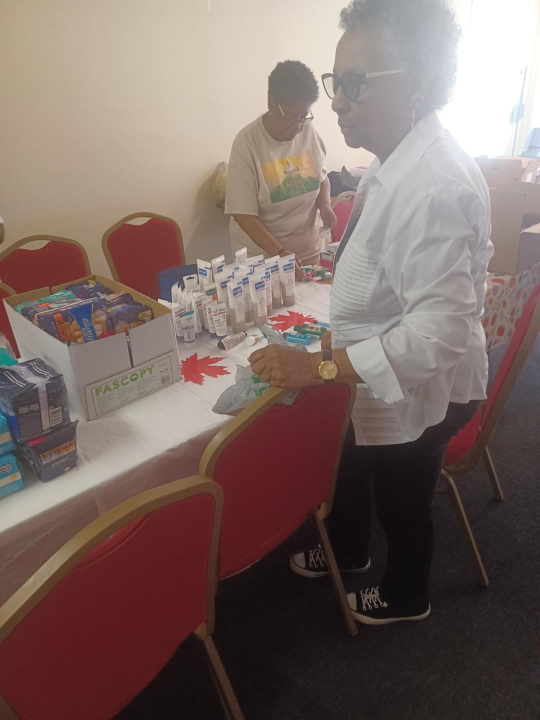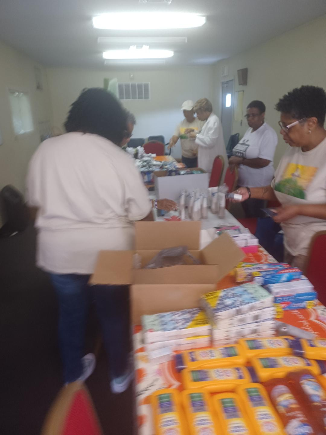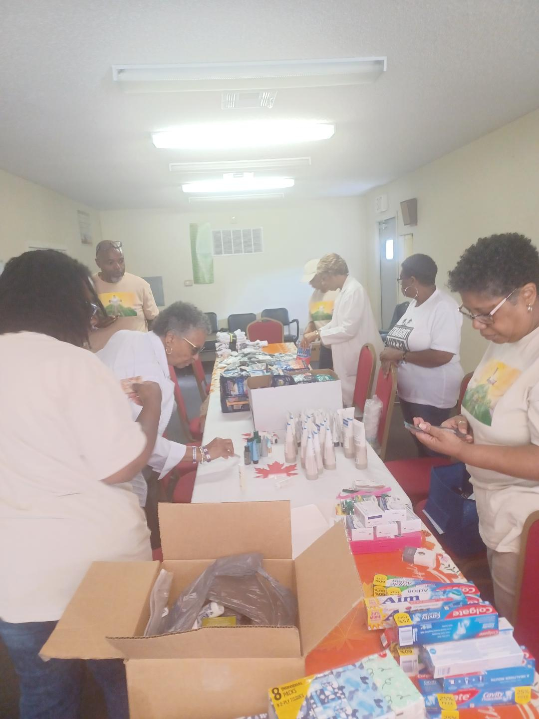 Preparing personal items, blankets, socks, rubbing alcohol, etc., for people experiencing homelessness